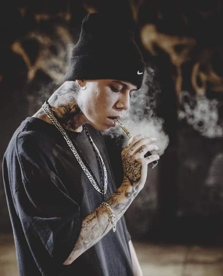 Fumandosanta Fe Klan Em Uma Camisa Amarela. -