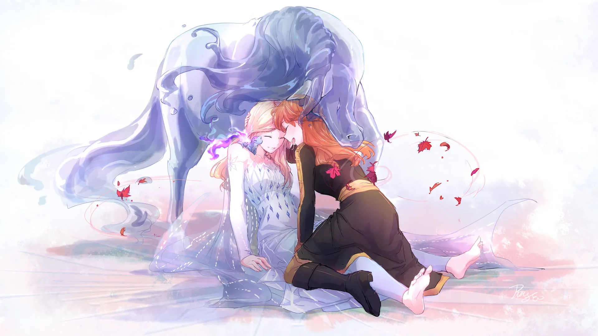 Fanartde Elsa E Anna Em Estilo Anime Papéis de Parede -