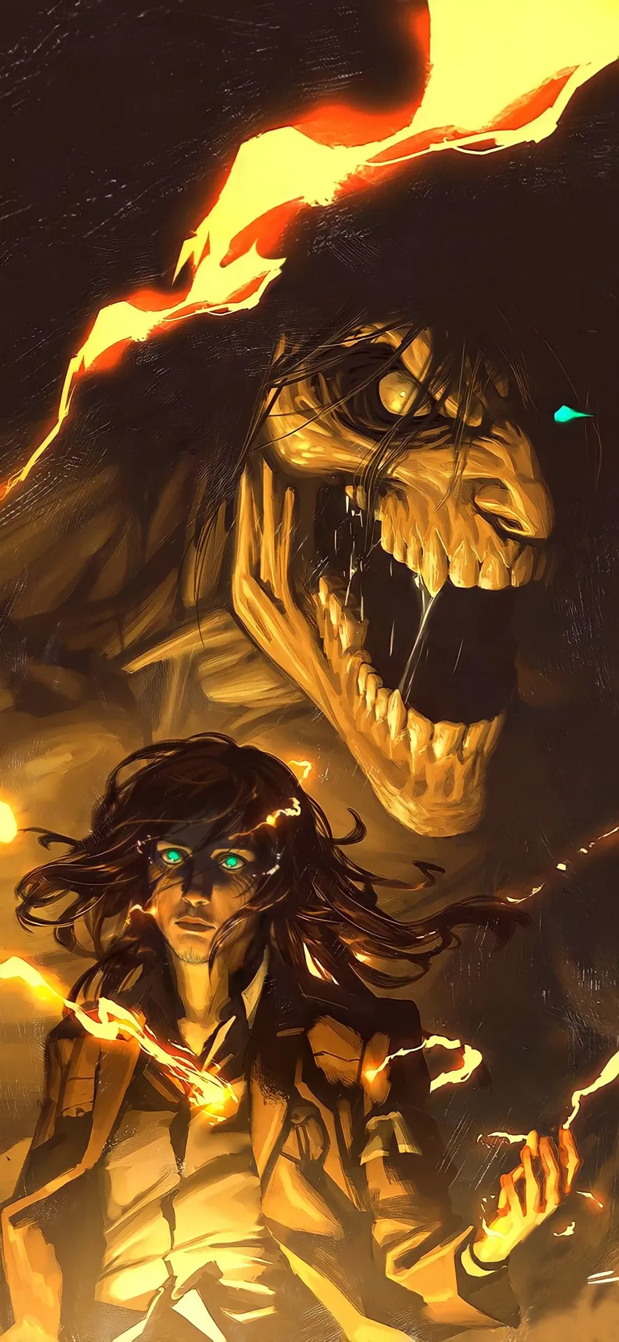 Papelde Parede De Anime Estético Eren Se Transformando Em Titã Para Iphone. Papéis de Parede -