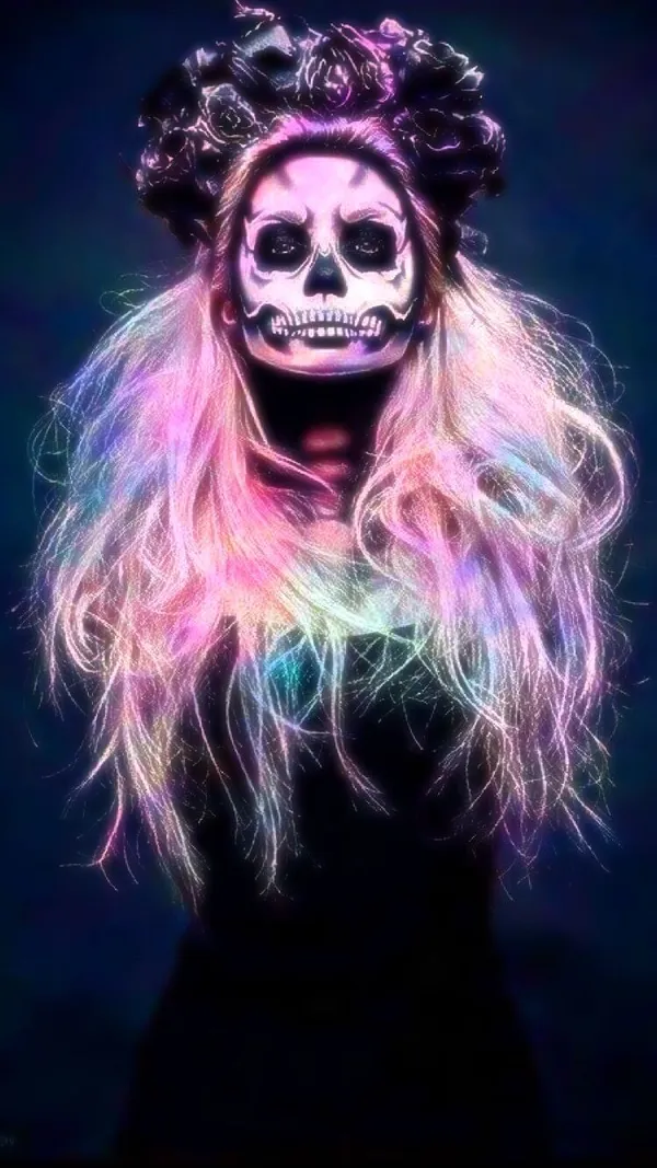 Umamulher Com Cabelos Azuis E Roxos E Um Rosto De Caveira Papéis de Parede -