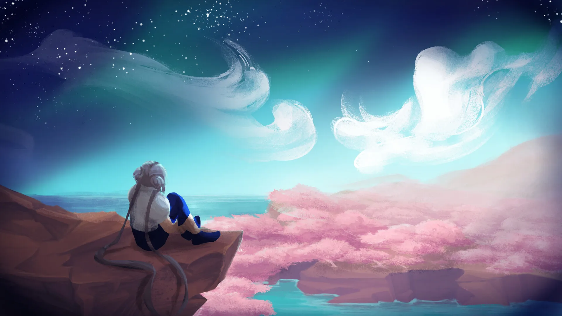 Umagarota Está Sentada Em Uma Rocha Olhando Para O Céu. Papéis de Parede -