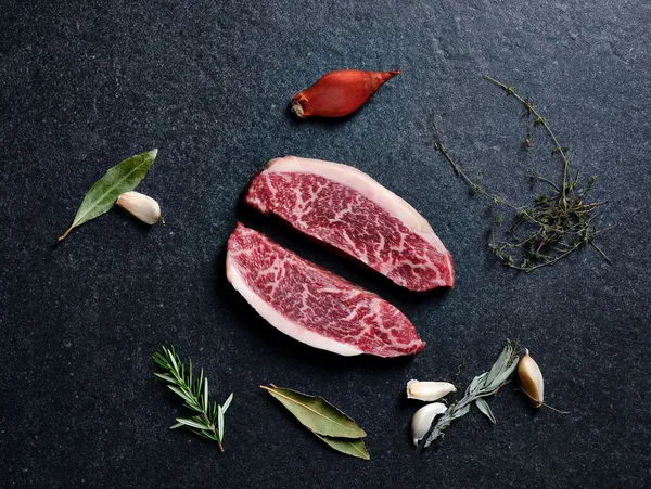 Carnede Kobe Fresca Em Um Fundo De Cor Escura -