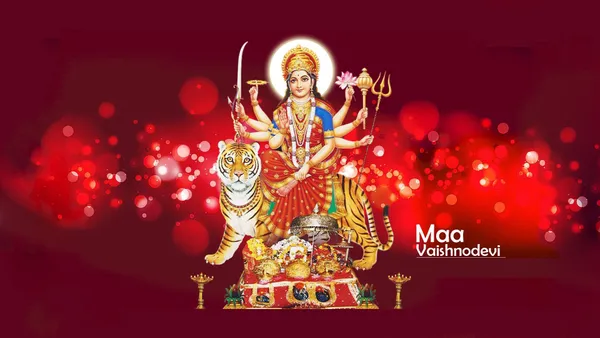 Manifestaçõesde Vaishno Devi Com Vestes Vermelhas. -