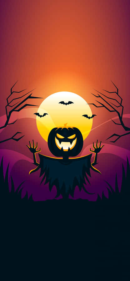 Fundode Tela De Halloween Do Iphone Com Jack O' Lantern E Espantalho Assustador. -