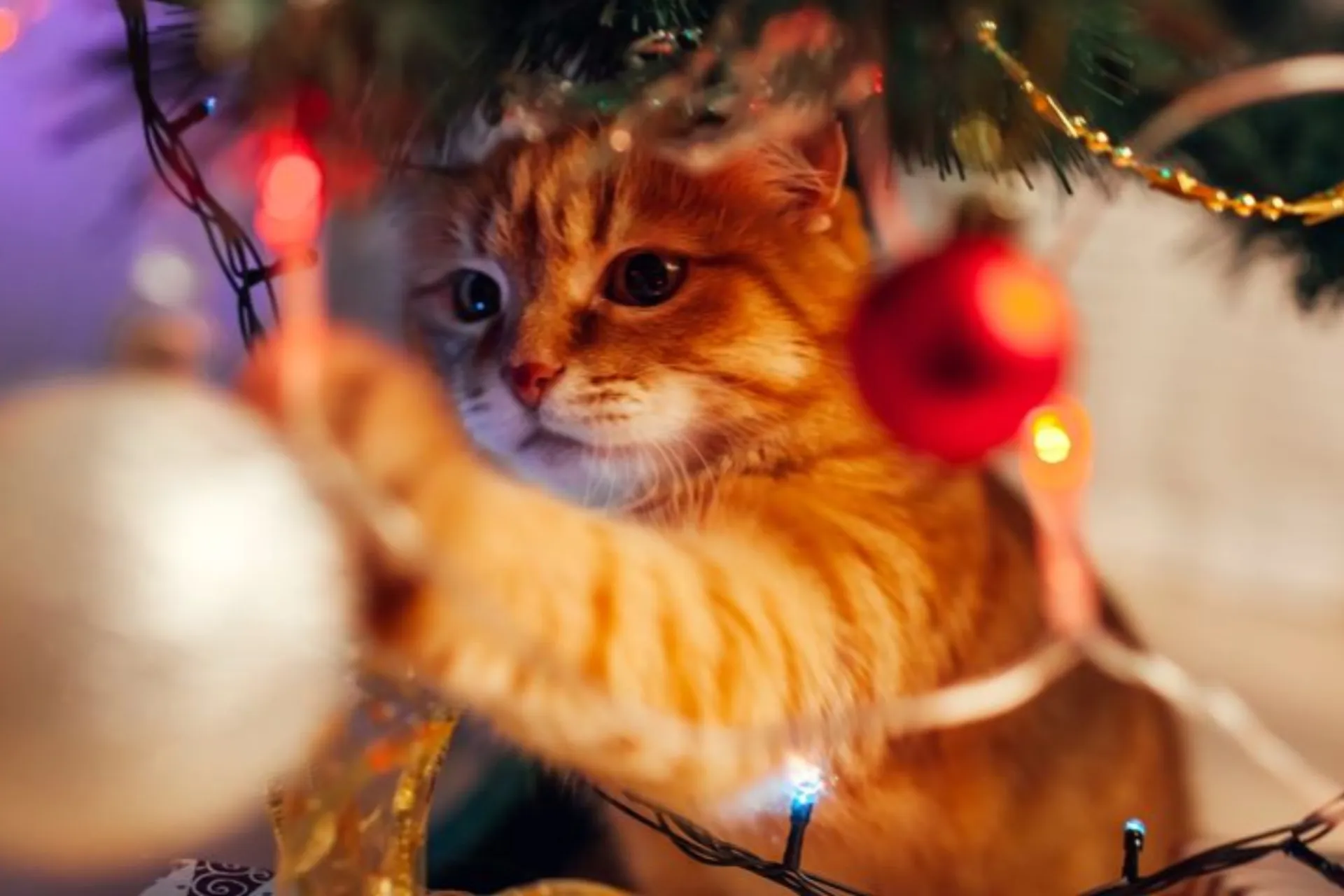 Gato Tigrado Festivo Em Árvore De Natal.jpg Papéis de Parede -