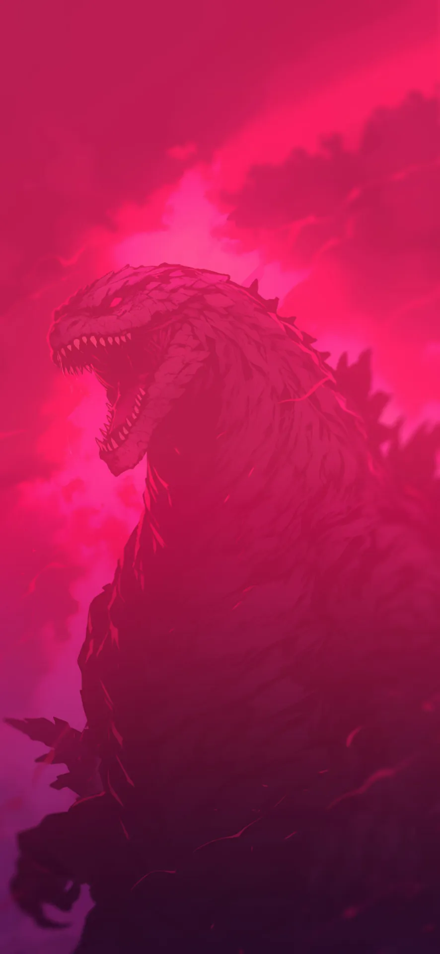 Silhueta De Godzilla Com Fundo Rosa Papéis de Parede -
