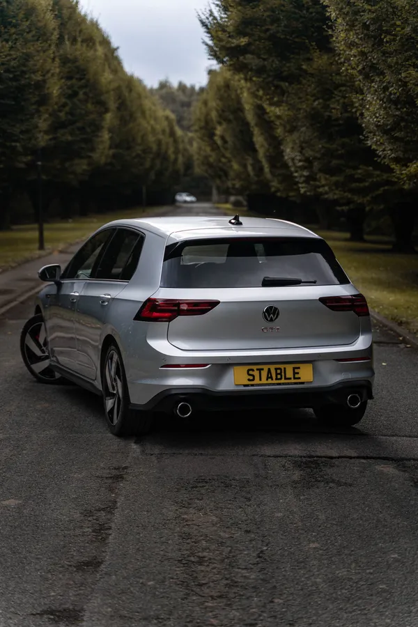 • 2021veículo Golf Gti Prata Vista Traseira.