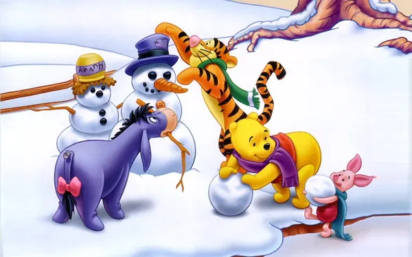 Disneywinnie The Pooh Fazendo Um Boneco De Neve. Papéis de Parede -