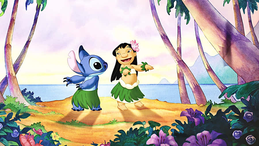 • "liloe Stitch Dançando 1366x768 Fundo Da Disney"
