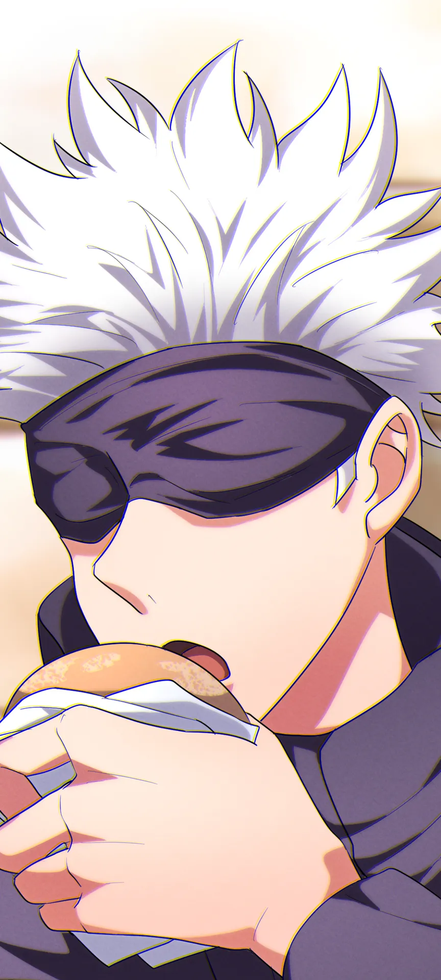 Papel De Parede Fofo De Satoru Gojo Comendo Em Jujutsu Kaisen Para Celular. Papéis de Parede -